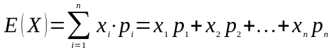 Математичним сподівання випадкової дискретної величини називається сума добутків окремих значень, що їх набуває на їх, відповідні ймовірності.