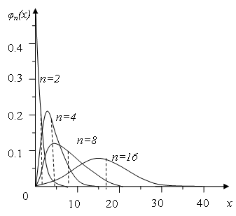 Итак, распределение χ2 зависит от одного параметра n – числа степеней свободы.