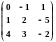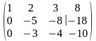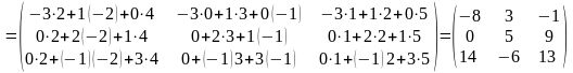 Первую строку оставляем без изменения. Умножаем элементы первой строки на (-3) и прибавляем к соответствующим элементам второй строки. Получим: