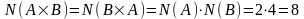 Рис. 1. Прямое A x B и обратного B x A произведения двух точечных множеств