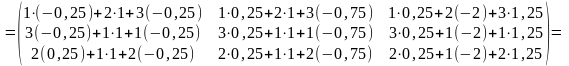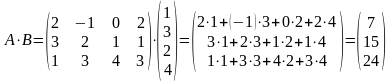 устанавливаем, что эти прямоугольные матрицы можно перемножать, при этом результирующая матрица будет иметь размеры 3х1: