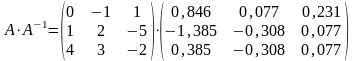 5. Проверяем достоверность вычисления обратной матрицы, умножая ее на исходную матрицу