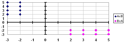4.Изображаем элементы декартовых произведений АхВ и ВхА в виде точек декартовой плоскости (рис.1). Произведениями множеств являются