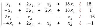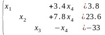 Так как больше строк в качестве разрешающих не осталось, выписываем систему уравнений, которая соответствует последней матрице: