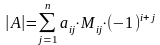 Мij – минора элемента aij. Минора элемента aij матрицы А называется определитель матрицы, которая была получена путем удаления из матрицы А строк и столбцов, которые содержат элемент aij