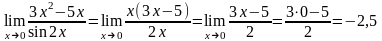 . Избавимся от обнуляющего множителя, для этого числитель разложим на множители, а к знаменателю применим эквивалентную бесконечно малую: при