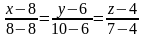 Составим уравнение прямой проходящей через точки А1(8; 6; 4) и A4(8; 10; 7).