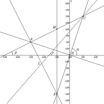 угол между прямыми ВС и АС и осью ОХ соответственно.
