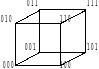 При геометрическом способе булева функция f(х1,..., xn) задается с помощью n-мерного куба. В геометрическом смысле каждый двоичный набор есть n-мерный вектор, определяющий точку n-мерного пространства. Исходя из этого, все множество наборов, на которых определена функция n переменных, представляется вершинами n-мерного куба. Отмечая точками вершины куба, в которых функция принимает единичные (либо нулевые) значения, получим геометрическое представление функции. Например, булева функция, заданная табл.1, геометрически представляется 3-мерным кубом (рис. 1.в).