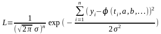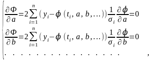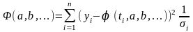 Имеются наблюдения (экспериментальные данные) y1, y2, ... ,yn точных величин (t1, a, b, ...) (t2, a, b, ...), ... , (tn, a, b, ...). Тогда величина i = yi - (ti, a, b, ...)