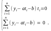 Беря частные производные от этой функции по а и b и приравнивая их нулю, получаем систему двух уравнений с двумя неизвестными