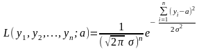 Нетрудно показать, что функция правдоподобия L = L(y1, y2, ..., yn; а) при этом а достигает своего максимума. Таким образом мы показали, что оценка математического ожидания неизвестного сигнала Х по методу наибольшего правдоподобия в предположении нормального распределения аддитивной помехи является средним арифметическим измерений y1, y2, ..., yn: