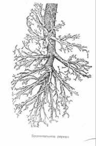 Войдя, в ворота легких, главные бронхи сразу же делятся вначале на долевые, а чуть ниже на сегментарные бронхи. В свою очередь сегментарные бронхи продолжают делиться (каждый из них попарно) на более мелкие бронхи, образуя так называемое бронхиальное дерево правого и левого легких.