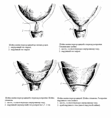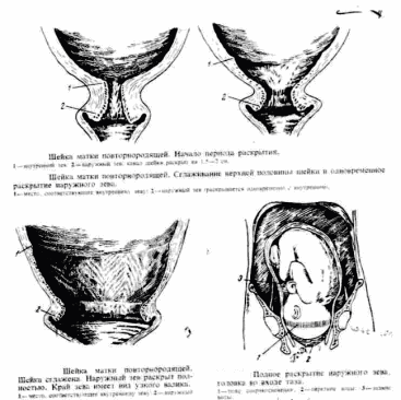 Сглаживание и раскрытие канала шейки матки у первородящих и у повторнородящих происходят неодинаково.