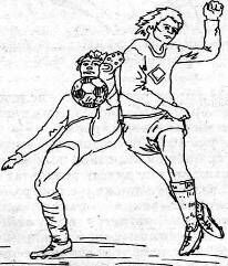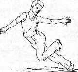 Рис. 23. Типичный механизм травмы капсульно-связочного аппарата: падение с поворотом при фиксированной стопе, отведение голени и наружная ротация верхней половины туловища