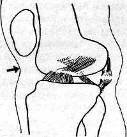 Рис. 26. Типичная травма коленного сустава при перегрузке: