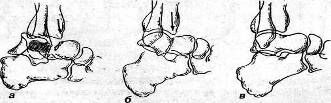 Переломы таранной кости (рис. 33). Механизм перелома, как правило, непрямой — падение с высоты на ноги, резкое торможение автомашины при упоре ступнями в ее пол или рычаги управления и т. д.