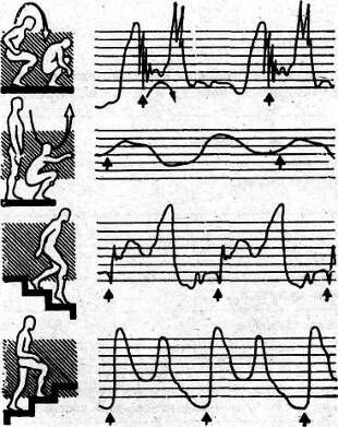 При спринтерском беге, прыжках в длину, тройным и в высоту вертикальная составляющая силы опорных реакций достигает 5— 7 кН, а горизонтальная — до 3—4 кН. Соответственно резко возрастают нагрузки на все суставы и сухожилия (табл.1).