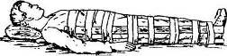 Рис. 13. Иммобилизация перелома бедра с помощью одной доски