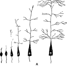 На ранних стадиях эмбрионального развития нервная клетка имеет большое ядро, окруженное незначительным количеством цитоплазмы. В процессе развития относительный объем ядра уменьшается. Рост аксона начинается на третьем месяце внутриутробного развития. Дендриты вырастают позже аксона. Синапсы на дендритах развиваются после рождения.