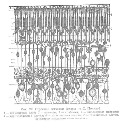 В состав глаза входят рецепторный аппарат, находящийся в сетчатке, и оптическая система. Значение последней заключается в том, что она собирает световые лучи и обеспечивает четкое действительное изображение предметов на сетчатке, но в уменьшенном и обратном виде.