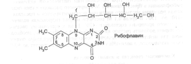 Витамин В2 (рибофлавин) представляет собой 6,7-диметил-9-(В-1' -рибитил) -изоаллоксазин: