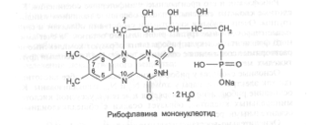 Кроме рибофлавина, в медицинской практике применяют его коферментную форму - рибофлавина мононуклеотид: 7,8-диметил-10-(1-О-рибитил)-изоаллоксазин-5'-фосфат натрия, или рибофлан – 5 – монофосфат натрия: