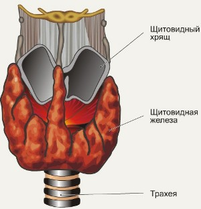 Щитовидная железа лежит поверх гортани. Ее гормоны, в том числе тироксин, регулируют обмен веществ. От их количества зависит уровень потребления кислорода всеми тканями тела. Недостаточная функция железы в детском возрасте приводит к развитию кретинизма (задерживается рост и умственное развитие), во взрослом возрасте - к заболеванию микседемой. Избыток гормонов у взрослых приводит к развитию зоба (базедовой болезни).