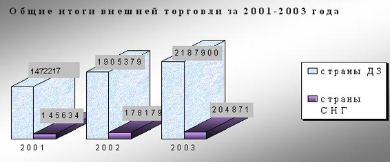 Экспорт в страны дальнего зарубежья составил в 2003 г. – 2,4 млрд. долларов США.