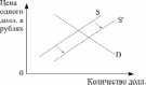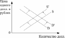в) Уменьшение экспортных и импортных пошлин ведет к увеличению торгового оборота с другими странами, а значит и увеличение количества валютных операций, в общем случае это означает увеличение как спроса, так и предложения иностранной валюты. (рис.3)