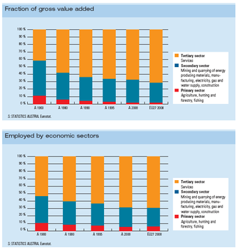Такая структура изменений типична для 27 ЕС государств, где вторичный сектор занимает приблизительно 26 % ВДС, а третичного сектор приблизительно 72 % ВДС (GVA).
