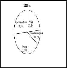 Заметно выросла доля электроэнергии: в 1988 г. она составляла 7,4 %, а в 1995 г. – 13,5%