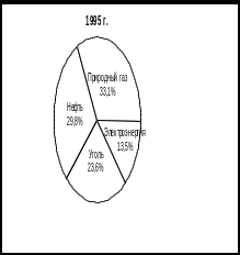 Доля природного газа увеличилась с 19,1 % в 1988 г. до 33,1 % в 1995 г.