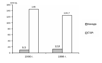 В Канаде наблюдается быстрый процесс насыщения парка автомобилей, который увеличился в 1998 г. по сравнению с 1990 г. почти в 1,5 раза. В Канаде в 1998 г. на один автомобиль приходилось 2,4 жителя или 423 автомобиля на 1000 жителей.