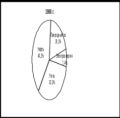 Доля каменного угля сократилась в 1995 г. на 9,7 % по сравнению с 1988 г.