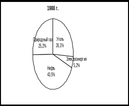 Доля природного газа увеличилась с 25,2 % в 1988 г. до 26,8 % в 1995 г.