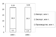 | 1990 г. 1998 г. | 3,1-18,3+0,19=-15,01 млн т.; 2,4-19,3+0,04=-16,86 млн т. | |||||