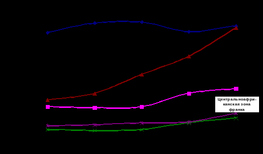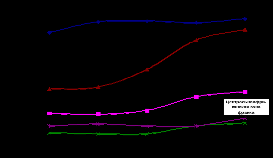 | Южная Африка | 2,5 | 1,5 | 1,1 | 0,9 | 0,8 | 0,5 | 0,5 | 0,6 |