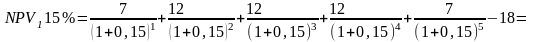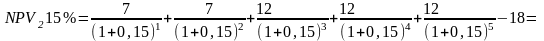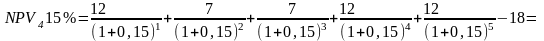 | NPV, 15% | 16,15 | 14,1 | 16,15 | 15,15 |