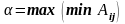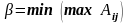 Нижняя цена игры (которая принята обозначать ) рассчитывается путем определения минимального значения Aij по каждой строке платежной матрицы (стратегии игрока Y) и выбора из них максимального значения, т.е.:
