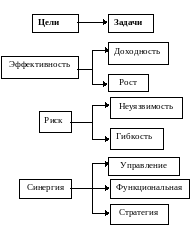 Рисунок 26 представляет основной список целей/задач, которые наблюдаются в деловой практике. В каждой фирме, цели определены заданием (миссией). Задачи, установленные для специфических целей, зависят от двух факторов: предпочтения основных держателей капитала фирмы и возможной эффективности, предлагаемых рынками фирмы.