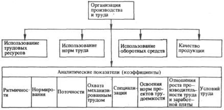 Аналитические показатели уровня организации производства и труда представляют собой следующие коэффициенты: