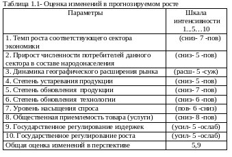 На третьем этапе осуществляется количественная оценка изменения факторов, определяющих перспективы роста в ближайшей и отдаленной перспективе. Для этого используется таблица бальной оценки важнейших факторов роста (таблица 1.1)