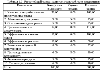 Максимальная оценка привлекательности рынка и конкурентоспособности предприятия может составить 1000,0 баллов. Рассчитаем: