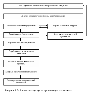 Организация службы маркетинга. Организация маркетинга— это непрерывный циклический процесс последовательной реализации этапов маркетинговой деятельности (рисунок 1.5).