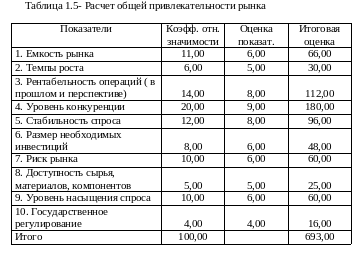 Таким образом, по результатам расчетов можно сделать вывод, что рынок имеет среднюю привлекательность.