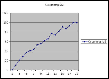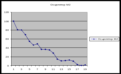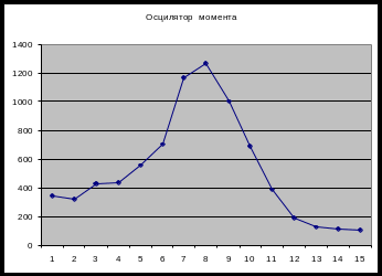 Метод «осциллятора момента» показывает, насколько быстро растет или падает значение исследуемого параметра. Если, например, скорость роста замедляется, то можно ожидать смену тенденции на противоположную (разворот тренда). Взяв за основу график изменения параметра от времени, рассчитываем значения осциллятора момента по формуле: