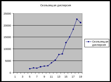 Данный график скользящей дисперсии говорит о продолжительной смене тенденции изменения параметров процесса.