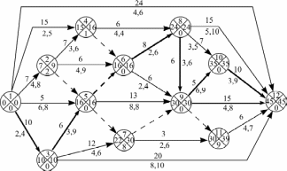 Рис. 3.2. Рассчитанный сетевой график варианта 5
