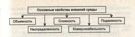 К основным свойствам внешней среды относятся объемность, сложность, подвижность, неопределенность и коммуникабельность (рис. 6.2).